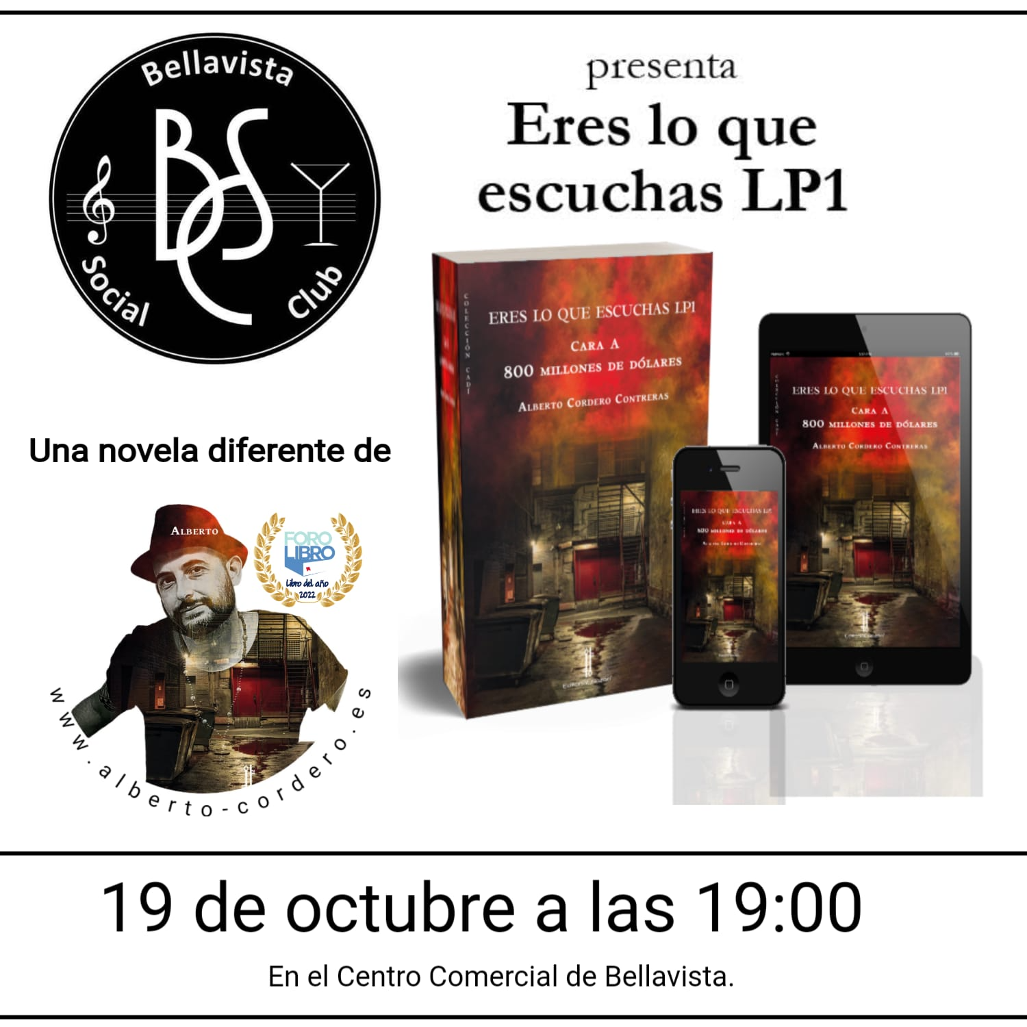 El próximo 19 de Octubre ’23, Jueves, a las 19:00 h tendrá lugar, en la sede de nuestra asociación, la presentación de la novela de Alberto Cordero titulada “Eres lo que escuchas LP1”.