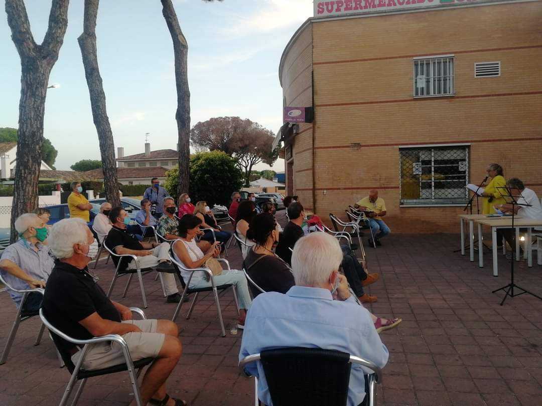 En el recital intervinieron los poetas: Manuela Lozano, de Punta Umbría; Augusto Thasio, de Isla Cristina; Ana Deacracia, de Huelva; Jose Luis Piquero, de Gibraleón; Maria Luisa Dguez. Borrallo, de Gibraleón; Mario Rodríguez, de Aracena; y Javier Sánchez, de Cortelazor y residente en Bellavista quién coordinó el acto. Fue una tarde-noche de poemas y versos que volaban por los aires. Acto memorable donde el público se deleitó con las intervenciones de los y las poetas.