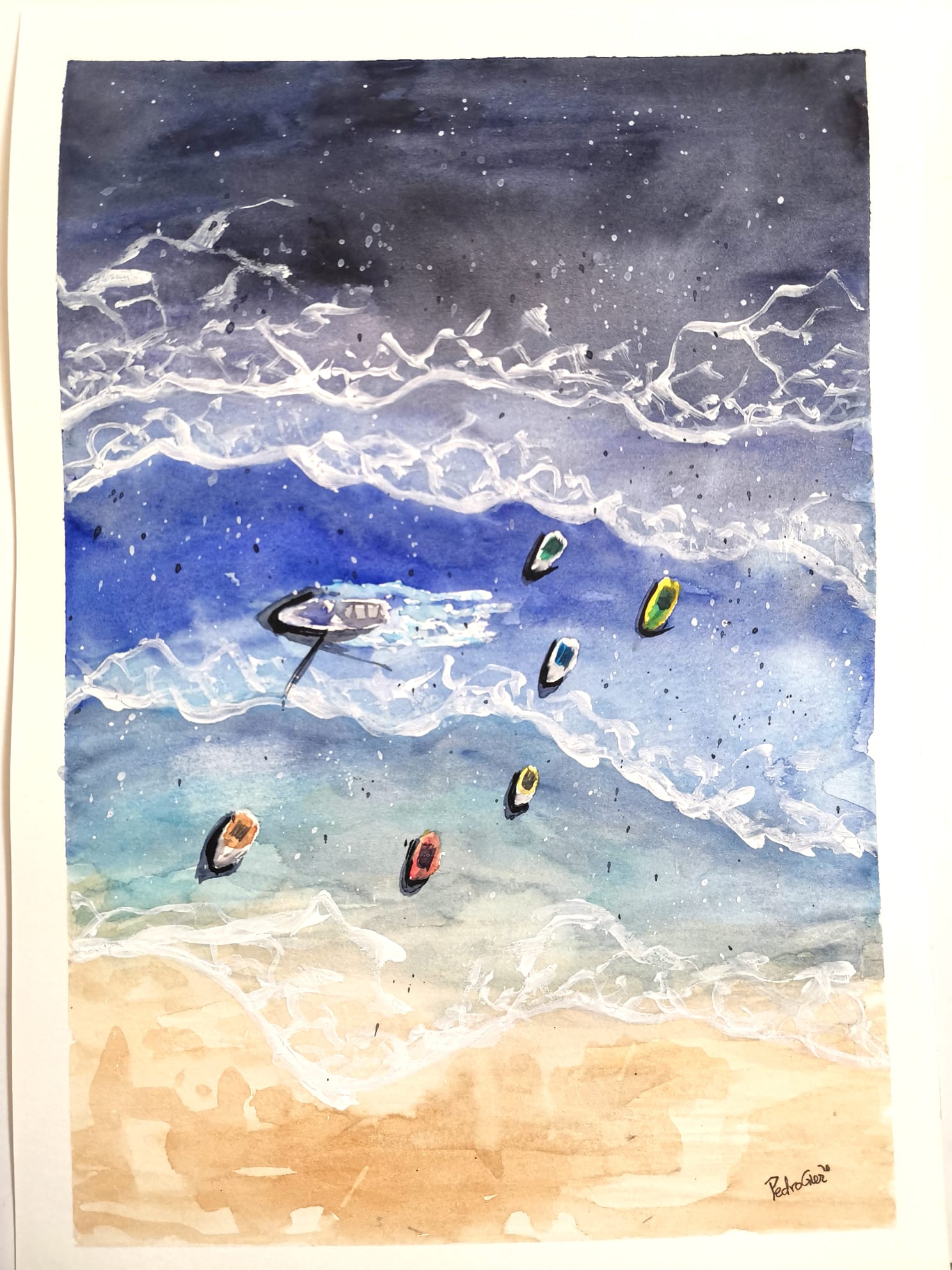 Las acuarelas expuestas, cuyo autor ha titulado “Tierra, Mar y Almas” son obras de gran colorido y realismo, como puede apreciarse en algunas de ellas que se inserta a continuación.