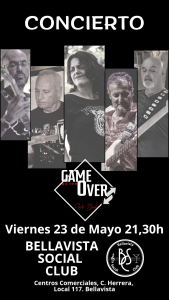 Este viernes 23 de Mayo’25 a las 21:30 h podremos disfrutar de la actuación del grupo de Rock “GAME OVER”, quienes no ofrecerán un concierto 100% Rock and Roll, con
