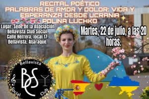 Este próximo Martes, 22 de Julio’25 a las 20:00 horas os esperamos para disfrutar de un recital de poesía titulado “Palabras de amor y dolor, vida y esperanza desde Ucrania”