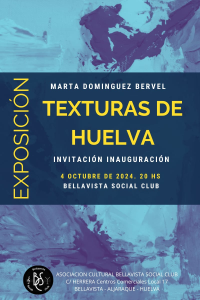 El próximo Viernes 4 de Octubre’24 se procederá a la inauguración de la exposición titulada “TEXTURAS DE HUELVA” de la artista onubense Marta Dominguez Bervel. Con grandes inquietudes artísticas, cursó