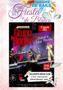 El próximo Sabado 17 de Agosto’24 celebraremos en nuestra Sede la Fiesta de Blanco, la cual será amenizada por el Grupo BOGART y su tributo a Elvis Presley, con el